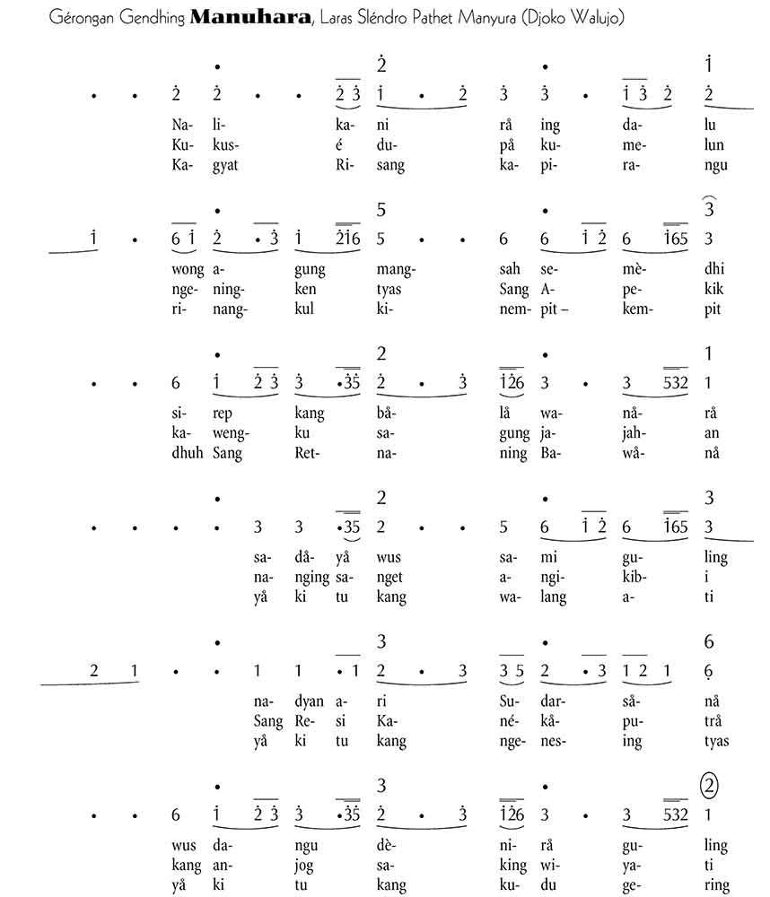 Baca juga: Notasi Gerongan Manuhara Pelog Barang