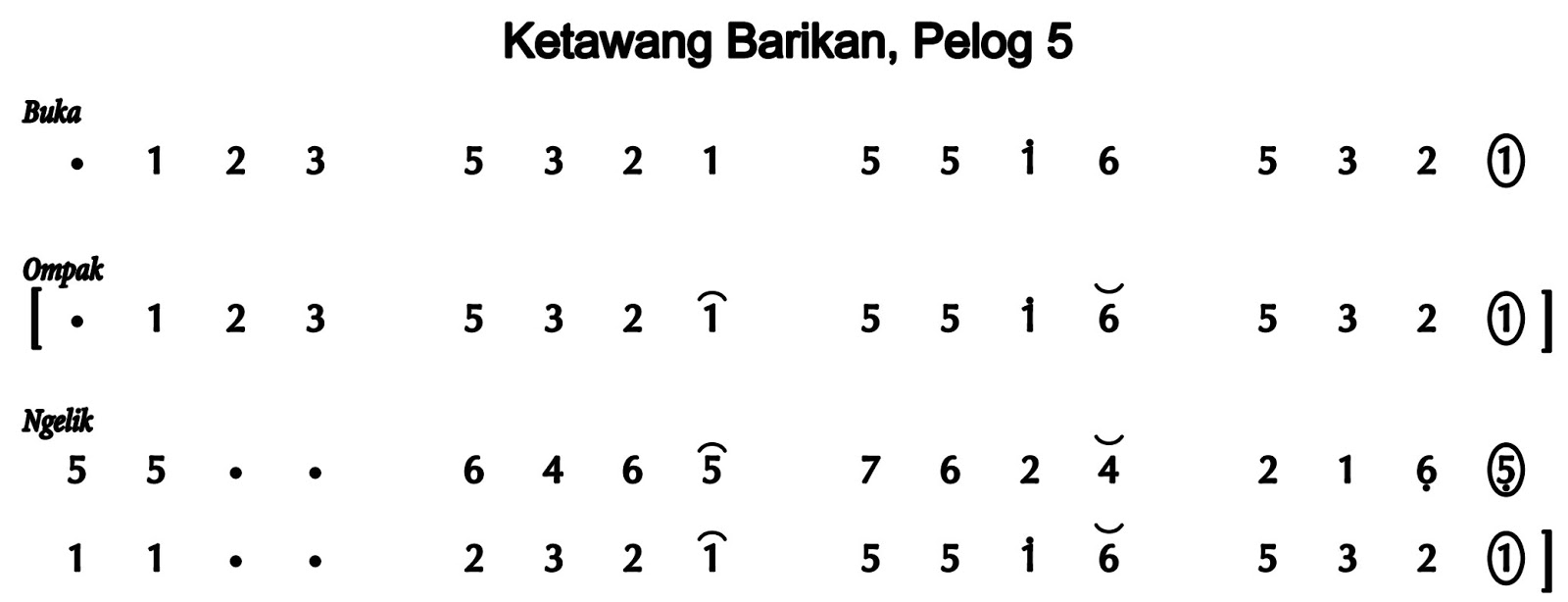 Notasi Ketawang Barikan Pelog 5