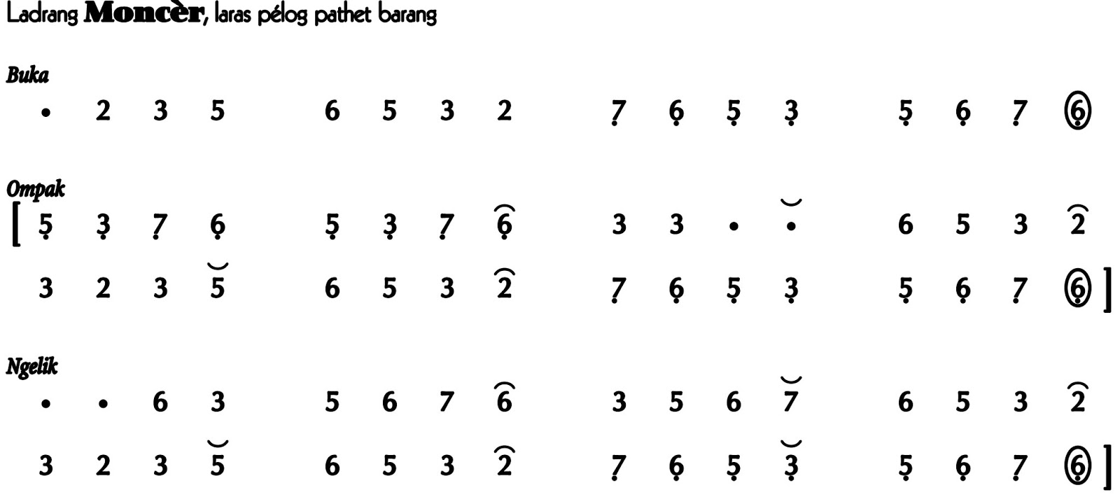 Ladrang “Moncer” adalah gending Jawa berbentuk ladrang dengan mengambil nada atau titi laras Pelog Barang. Berikut notasi Ladrang “Moncer” Pelog Barang lengkap.